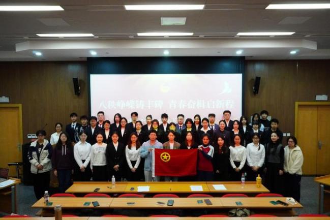 为纪念中国人民抗日战争暨世界反法西斯战争胜利80周年,传承伟大抗战精神,引导学院青年挺膺时代担当,11月18日,劳动经济学院团委于博远楼第三报告厅开展“八秩峥嵘铸丰碑 青春奋楫启新程”入团仪式。劳动经济学院团委书记张潇,团委副书记邓钰澄、程宇新、罗晨歌以及2025年下半年新发展团员参与活动,仪式由院团委组织部部长赵子枫主持。