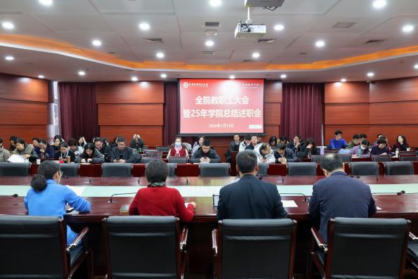 2026年1月14日上午,劳动经济学院在博纳楼五层第七会议室召开全院教职工大会暨2025年总结述职会。党委组织部副处级组织员宋晓颖、党委教师工作部副部长赵勋出席会议,学院班子成员、全体教职工参加会议。会议由学院党委书记何勤主持。