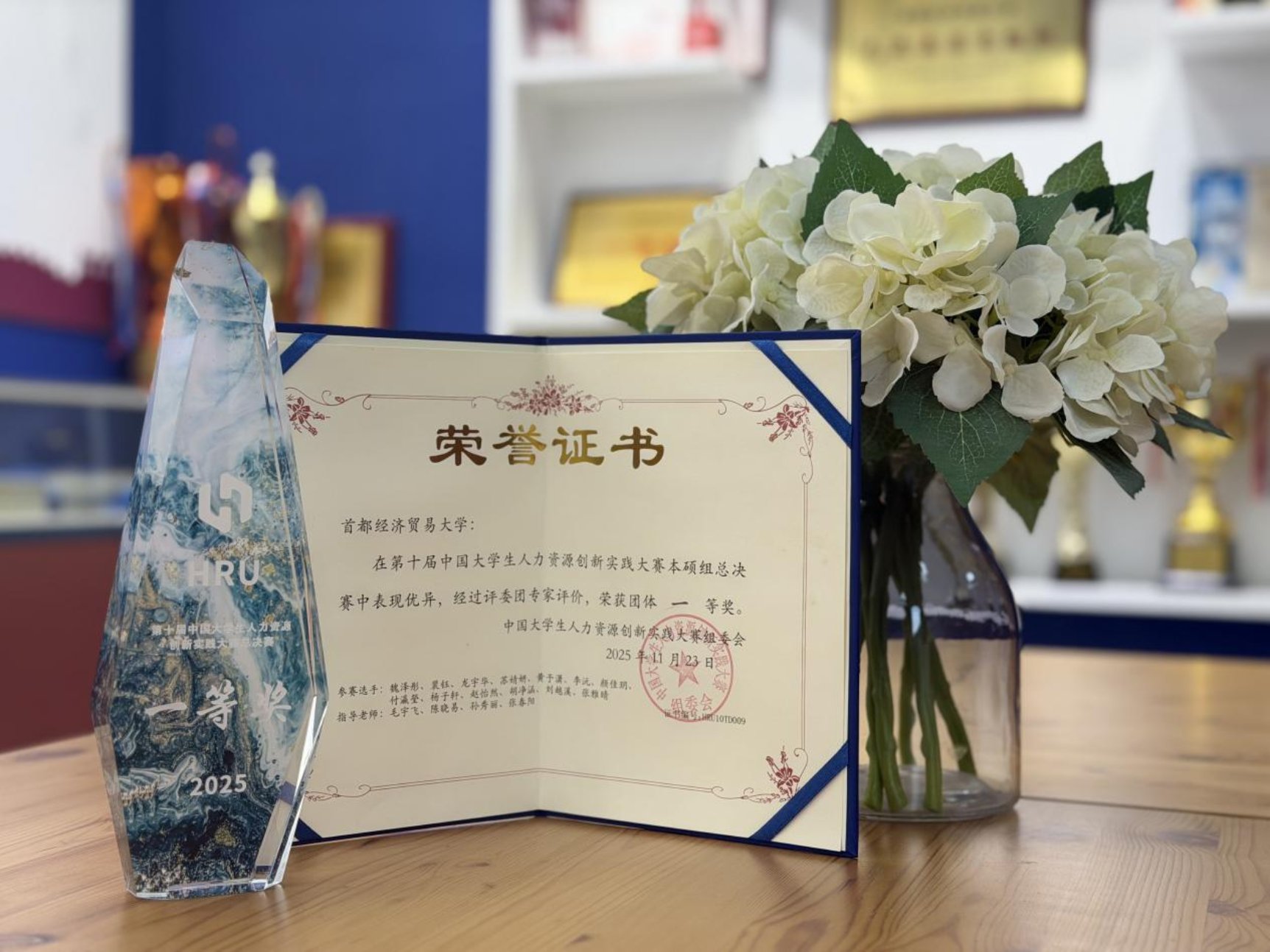 11月22日至23日,第十届中国大学生人力资源创新实践大赛(HRU大赛)全国总决赛在中国劳动关系学院圆满落幕。在首都经济贸易大学劳动经济学院指导教师毛宇飞、陈晓易、孙秀丽、张春阳的悉心指导下,代表队师生齐心协力、团结协作,最终斩获全国总决赛团体一等奖,充分彰显了我校在人力资源管理人才培养方面的扎实功底与卓越成效。