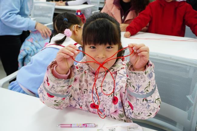 接着,志愿者带领小朋友们动手制作中国结。在志愿者的耐心指导和悉心帮助下,小朋友们将丝线编织成吉祥结等经典样式。一根根丝,一个个结,都承载着小朋友美好的期许。制作结束后,小朋友们依次展示自己的中国结作品,在交流互动中深化对传统文化的认识与理解。