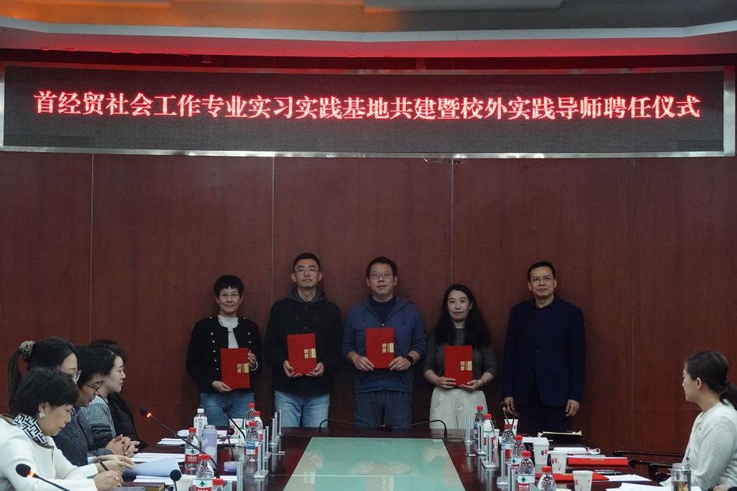 12月10日,首都经济贸易大学社会工作专业实习实践基地共建暨校外实践导师聘任仪式在博纳楼第七会议室隆重举行。首都经济贸易大学党委常委、副校长尹志超,劳动经济学院党委书记何勤,社会工作系系主任王轶等校方代表;丰台区委社会工作部部长杨勇、办公室主任彭永、综合科科长陈书锌等校外代表;以及来自首都医科大学附属北京儿童医院、中华少年儿童慈善救助基金会、北京市近邻社会工作发展中心、丰台区瑞丰社会服务中心、丰台区刘亚锦高级社工师工作室等多家实务机构的负责人、校外实践导师,与2025级社会工作专业硕士研究生齐聚一堂,共同见证这一重要时刻。